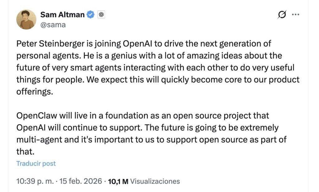 A finales del año pasado Peter Steinberger, un emprendedor y programador austríaco que utilizaba el asistente Claude, se hartó de que Claude no realizara acciones autónomas como un agente, y creó un prototipo que primero llamó Clawdbot, aunque tuvo una queja por parte de Anthropic y tuvo que cambiarlo a Moltbot para finalmente llamarlo OpenClaw, un asistente de IA personal que actúa en tu nombre y que ha sido la sensación de este nuevo año 2026, tanto que su creador ha sido recientemente fichado por OpenAI. Lo más curioso de OpenClaw es que no ha sido creado por una gran multinacional del sector sino por una sola persona.
